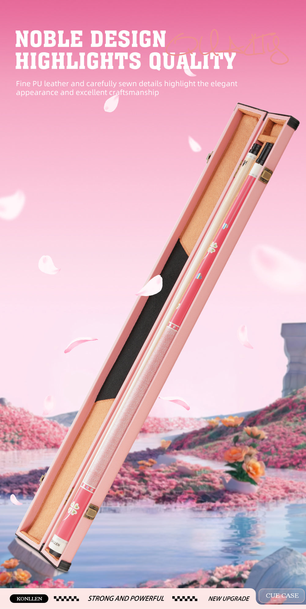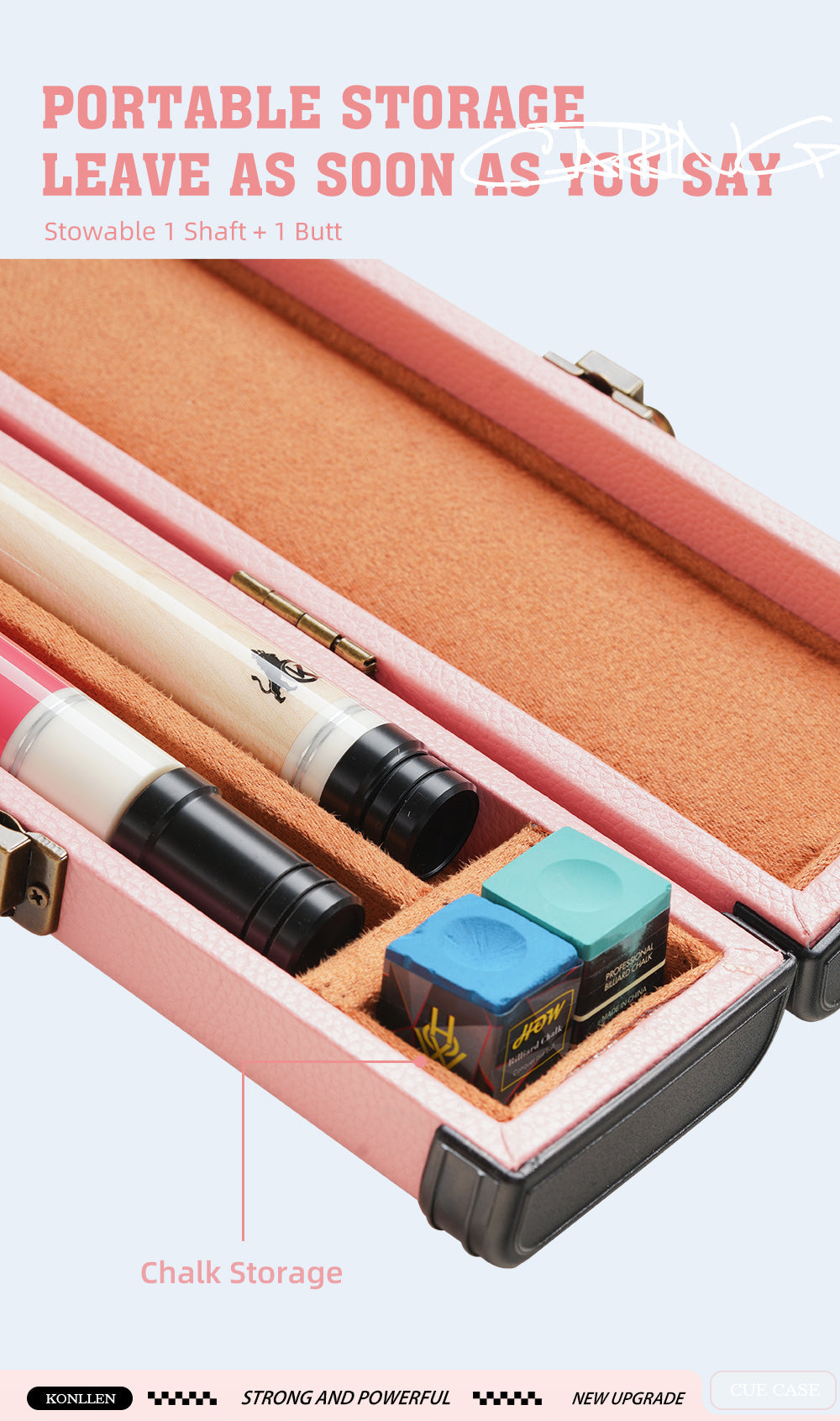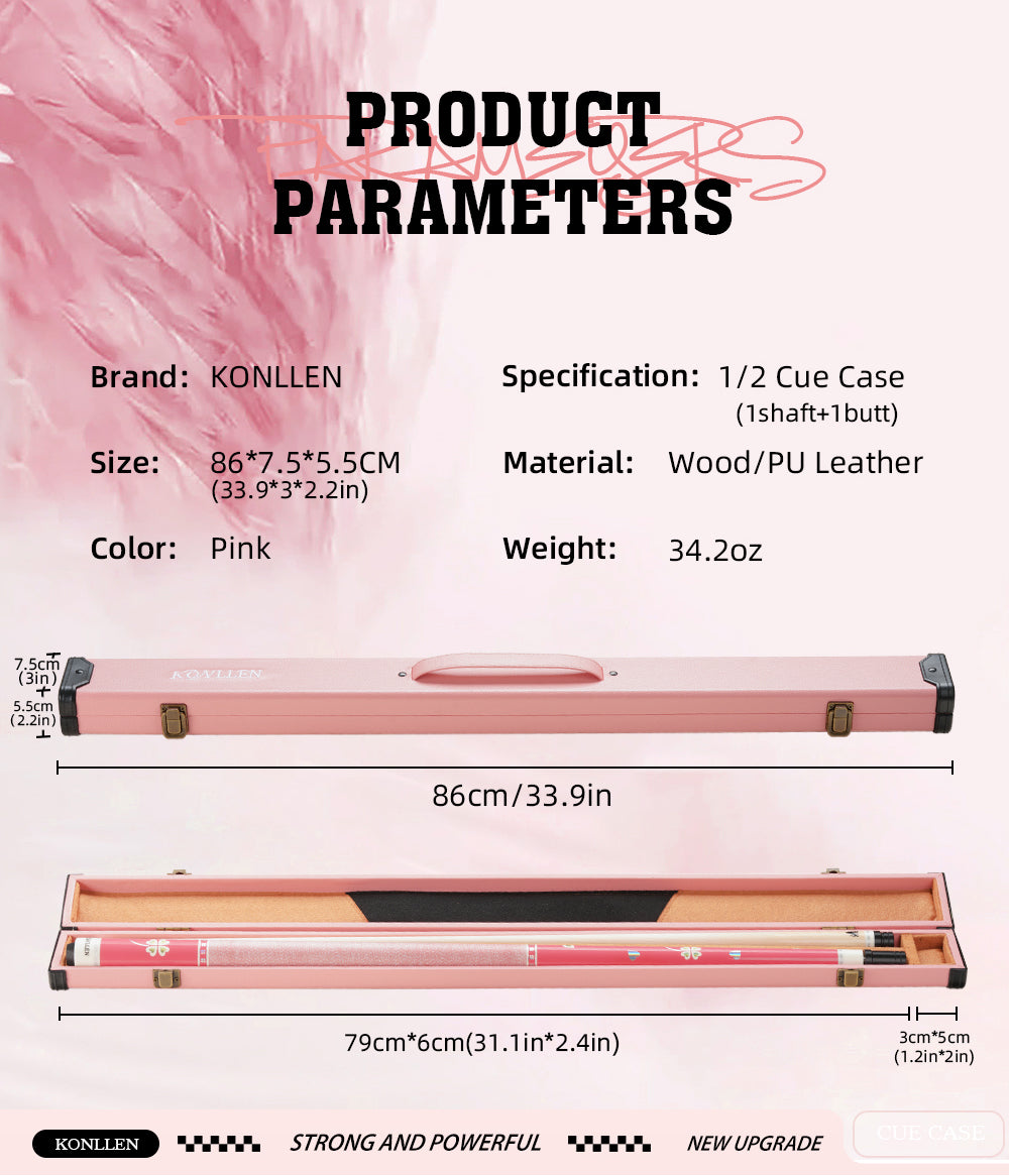 KONLLEN Pool Cue Case 1x1 PU Pool Stick Case Holds 1 Butt and 1 Shaft Billiard Stick Large Capacity Carrying Cases