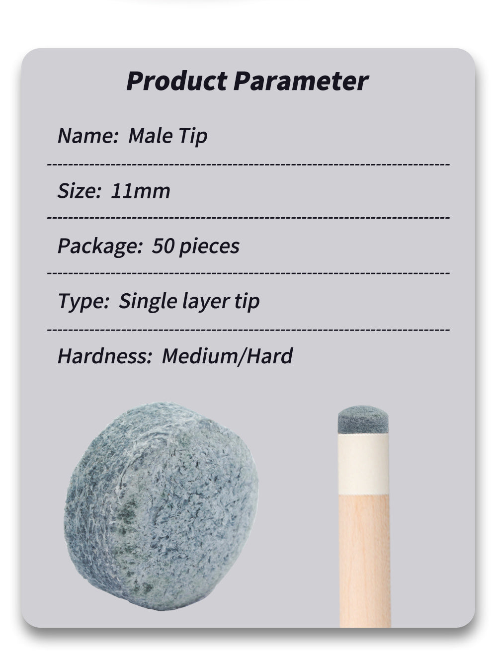 Male Tip Billiard Snooker Tips 11mm M/H 50 Pieces High Elasticity