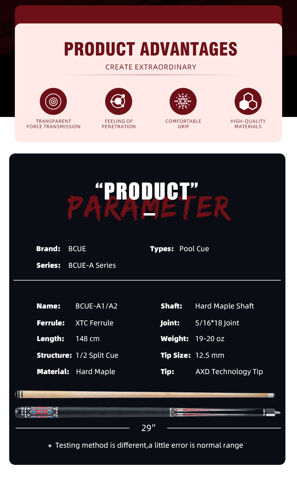 • [High - Quality Material]Crafted from premium maple wood, our pool cue stick is known for its sturdiness and durability. We spare no effort in selecting the finest materials for the cue stick and the cue tip.The high-quality tip ensures long-lasting performance, maintaining its shape and functionality over time.