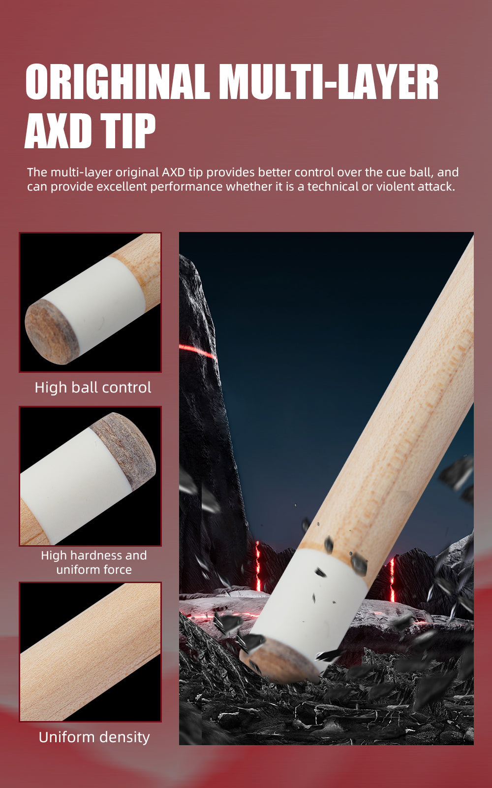 • [Comfortable and Durable Grip]The pool cue stick is equipped with an imitation leather-textured grip. This grip offers an outstanding holding experience and excels in wear resistance. Thanks to its high-quality construction, this grip can withstand extensive use, significantly extending the lifespan of the butt.