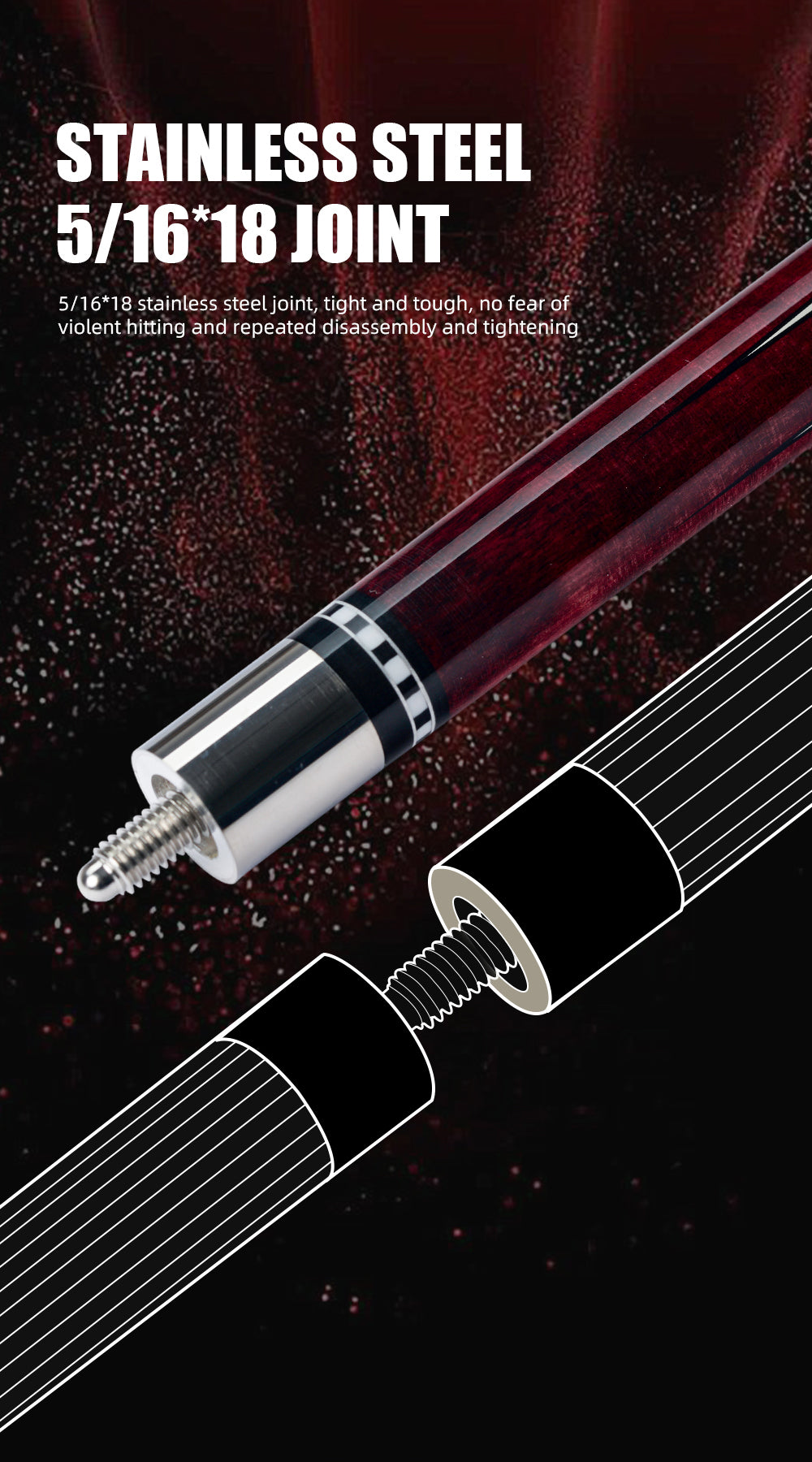 • [Superior Construction]The pool cue has a stainless steel 5/16* 18 joint and 58 inches in length and weighing 19-20oz, this 2-piece billiards cue is equipped with 12.5mm tip, offering the perfect balance between power and precision. Ideal for players at any skill level