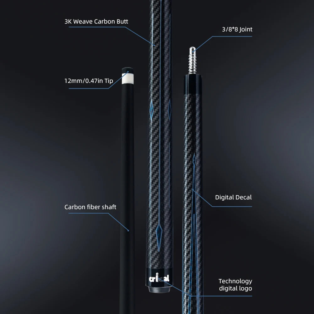 Crical 3 Cushion Billiard Cue Stick with Carbon Fiber Professional Carom Taper 12mm Tip 142 cm Libre Cue for Carom Cue