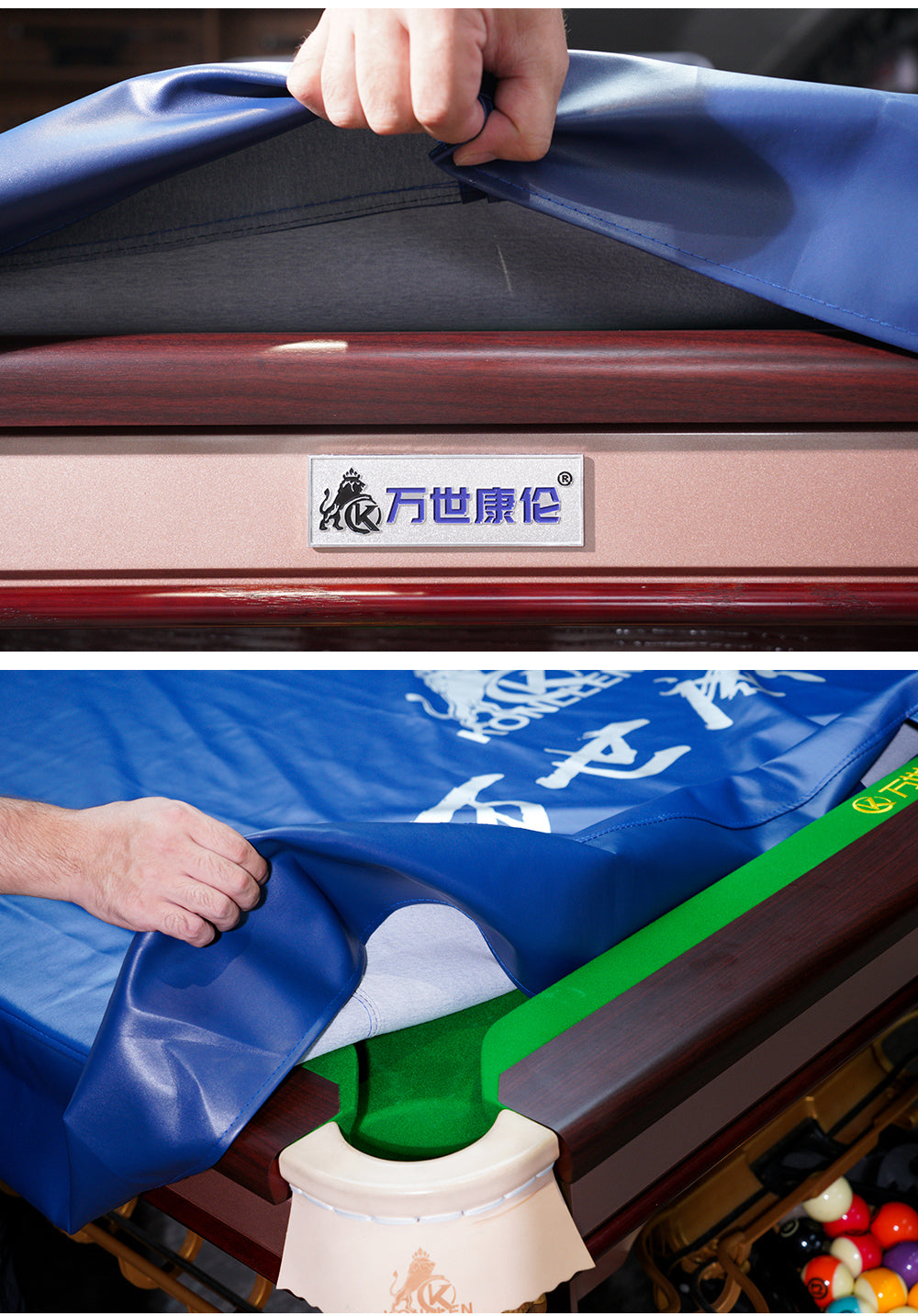 - Design and Process: KONLLEN's latest pool table cover showcases a distinctive rounded corner design, not only exuding aesthetic appeal but also facilitating effortless installation. Each corner is thoughtfully weighted and expertly machine-sewn to ensure exceptional durability and stability, thereby prolonging the service life of this remarkable pool table cover.