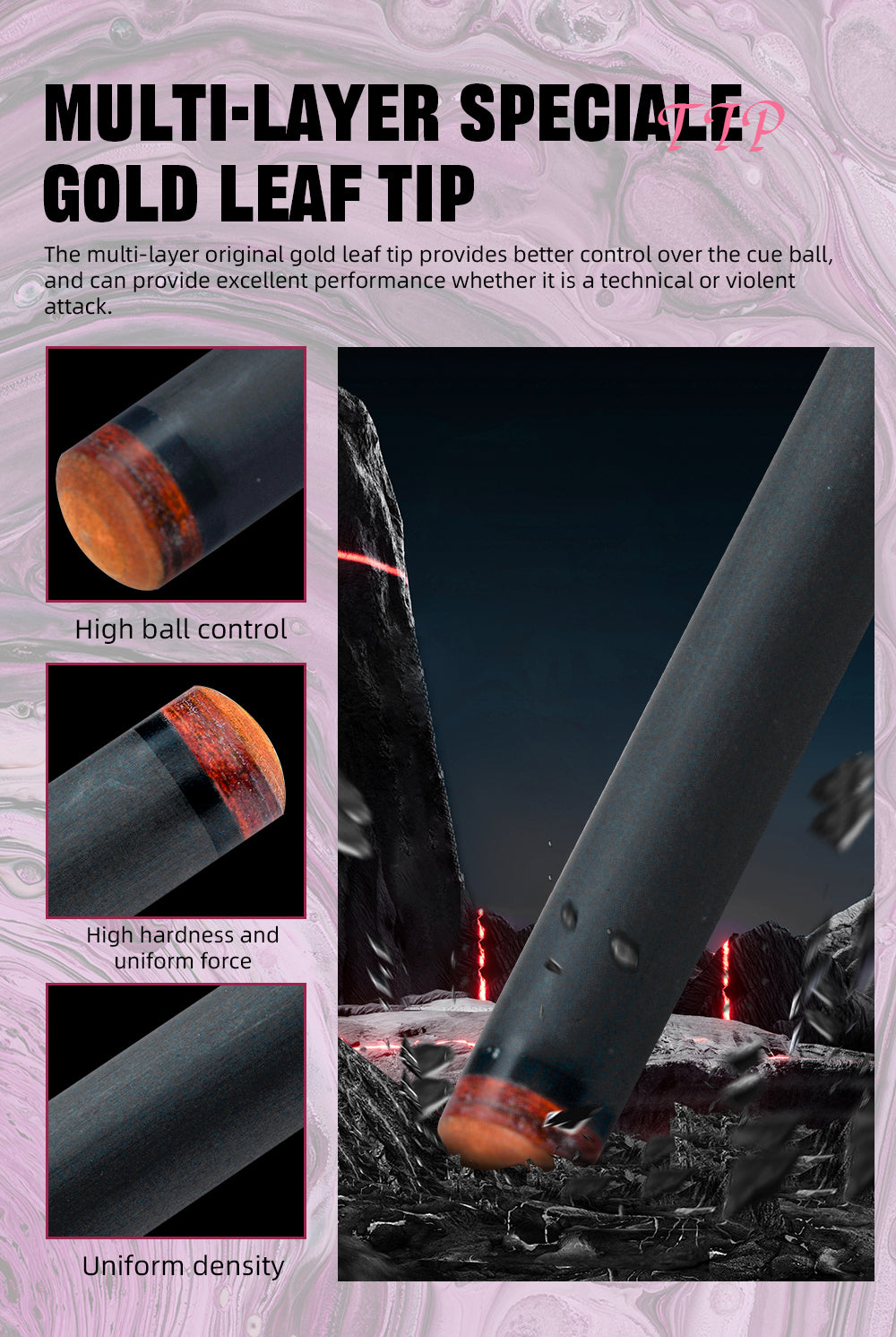- Professional 12.5mm Tip: The carbon fiber cue adopts a multi-layer pigskin tip imported from Japan, which is rich in elastic fiber and has strong ball-grabbing power. Crafted for precision and control, A hard center paired with softer edges, The tip is durable and infinitely playable.