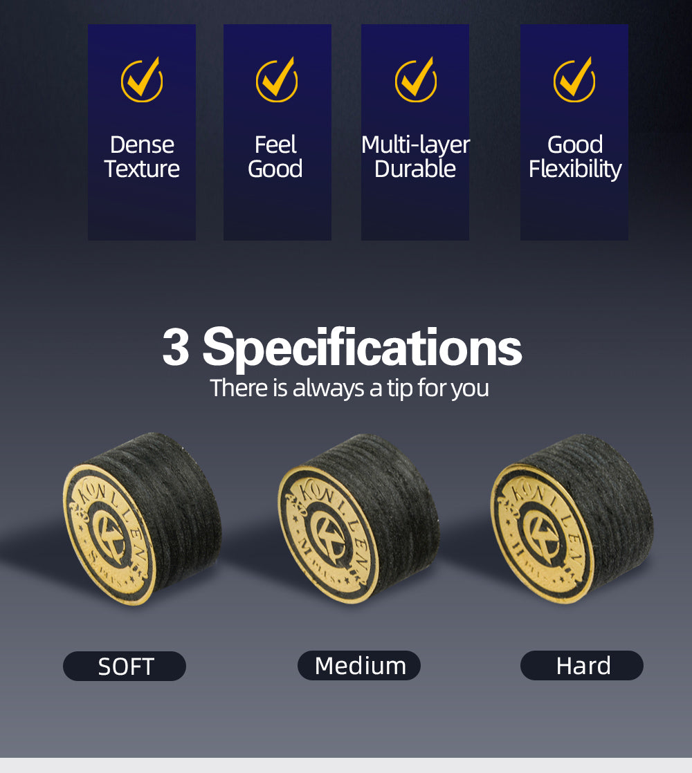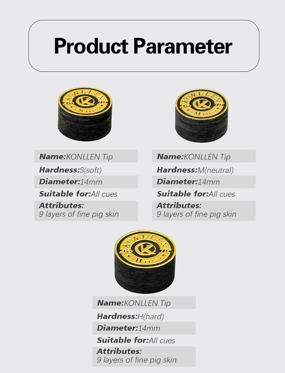 KONLLEN Billiards Pool Cue Tip 14mm S/M/H 1pcs