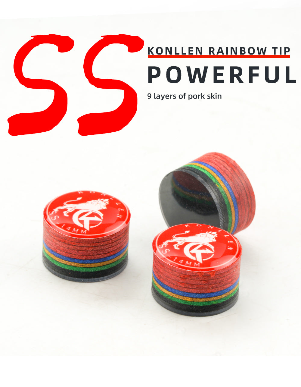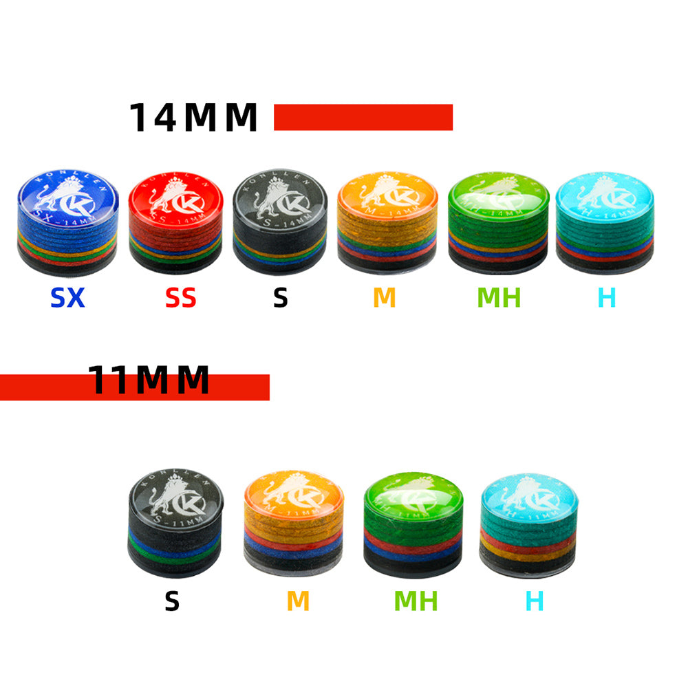 KONLLEN Rainbow Billiards Tip with Clear SX/SS/S/M/MH/H 11mm/14mm Pool Cue Tip 9 Layers Of Pigskin Cue Head Accessory 1 Piece