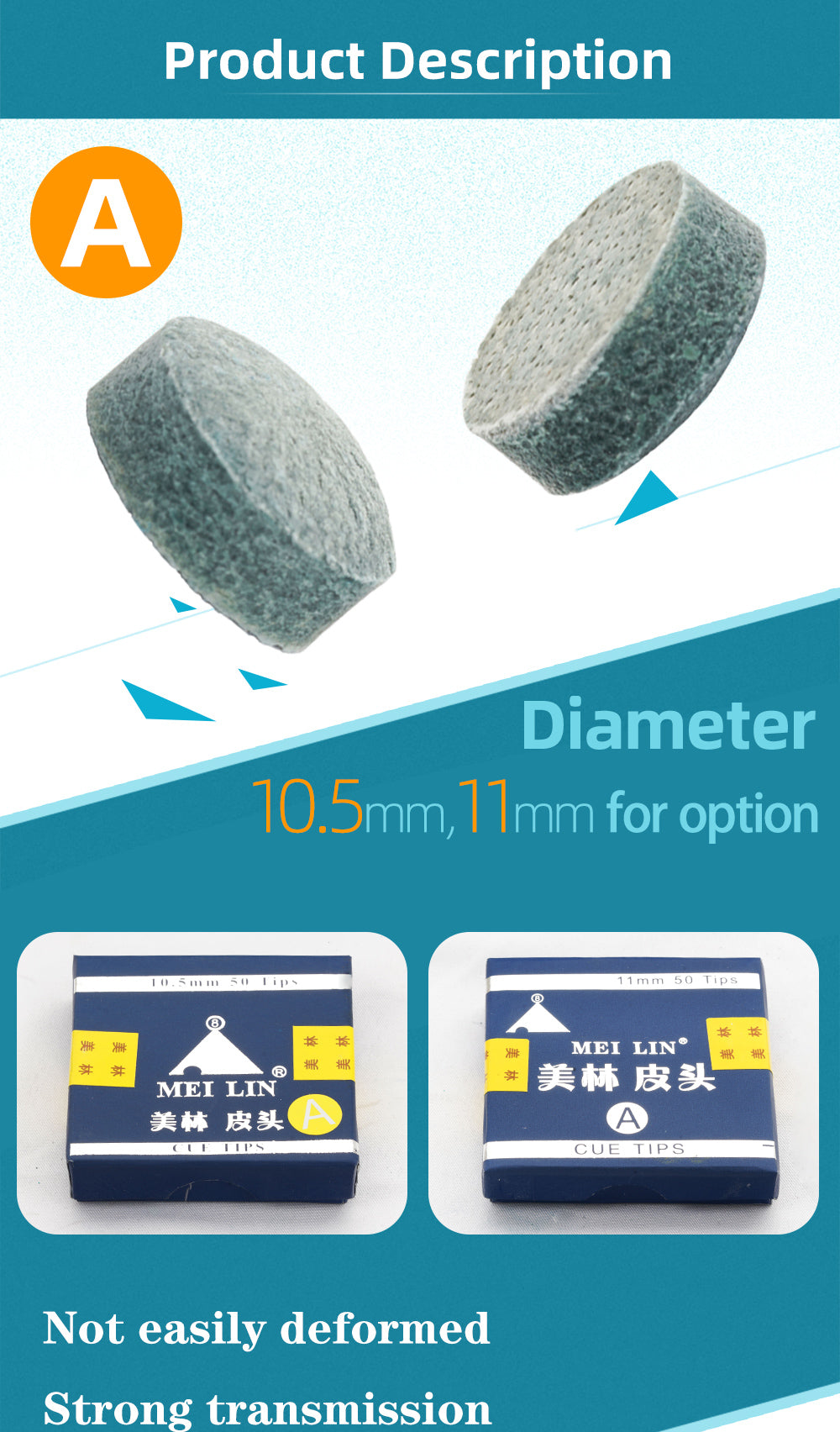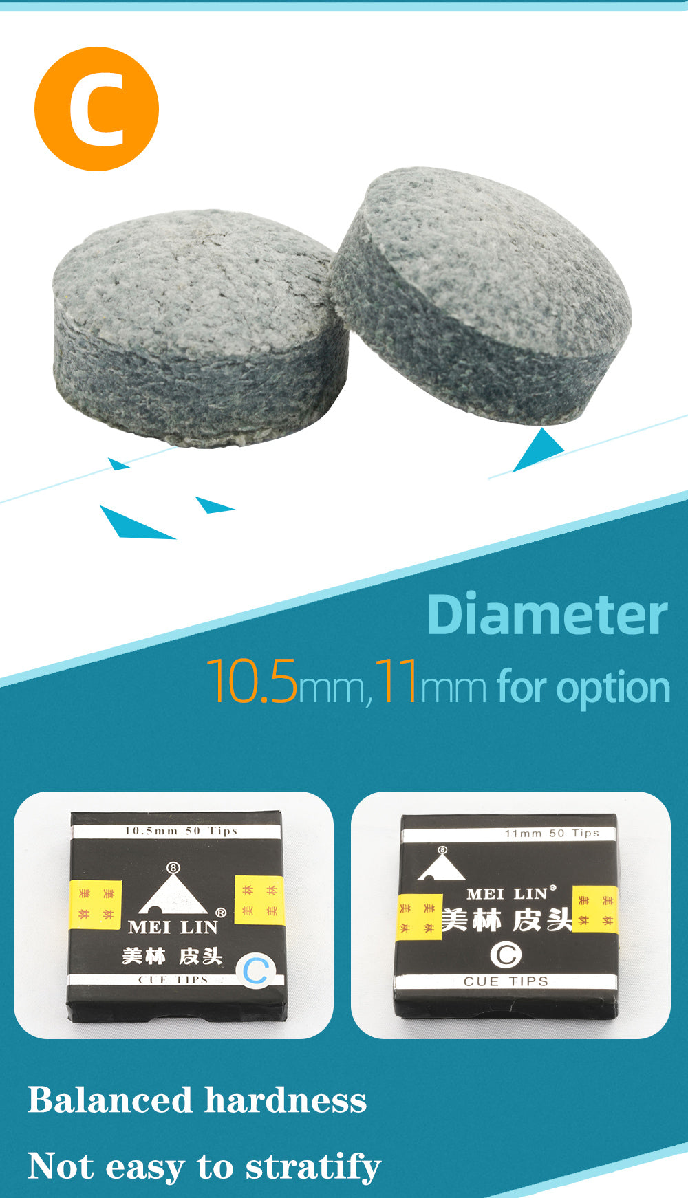 MEI LIN Cue Tips 50pcs 10.5mm 11mm Tips Billiards Tips Snooker Cue Tips Leather Head A/B/C/Red Pool Cue Tips