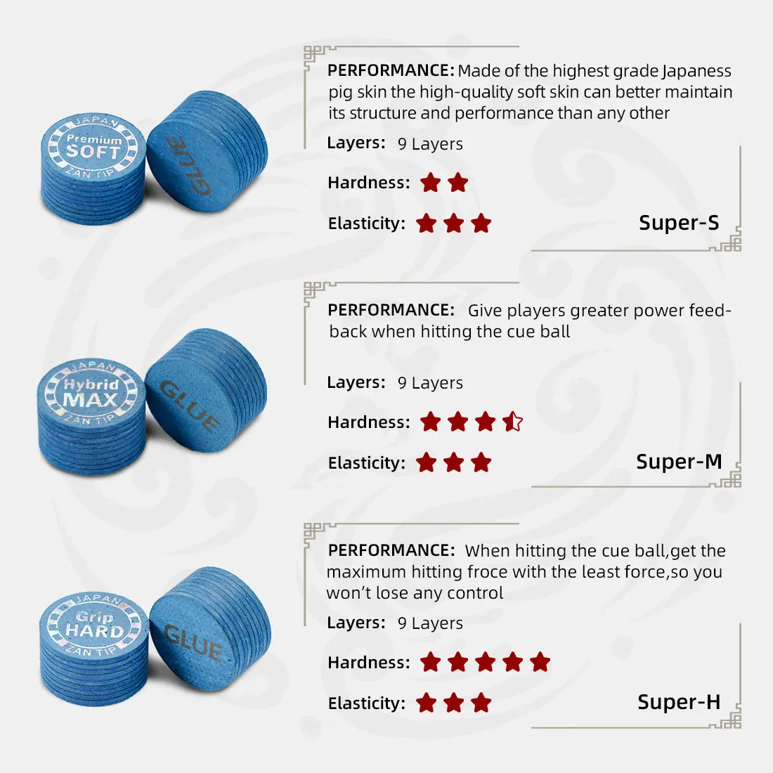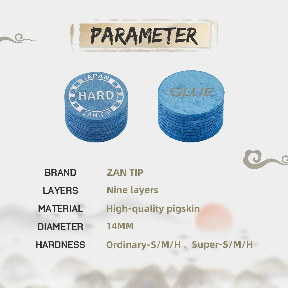 Super Zan Tip Premium billar Pool Cue 14mm Tips Standard Professional Billiard Cue & Pool Cue Stick Tips Billiard Accessories