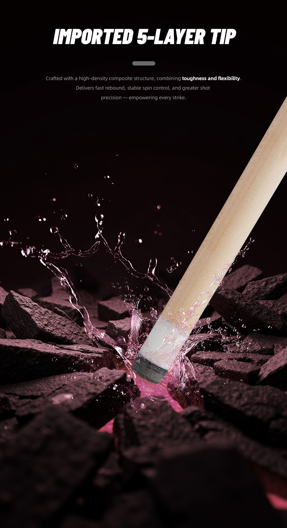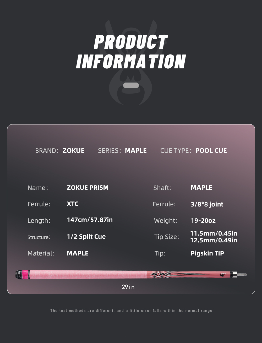 【11.5/12.5mm Tip】Zokue Pool Stick Features 11.5/12.5mm Tip is Comprised Of High-Quality Black 5 Layered Tip with Phenolic Ferrule to Create A Powerful Tip That Transfers More Energy, Resulting In Increased Cue Ball Control and Chalk Adhesion.